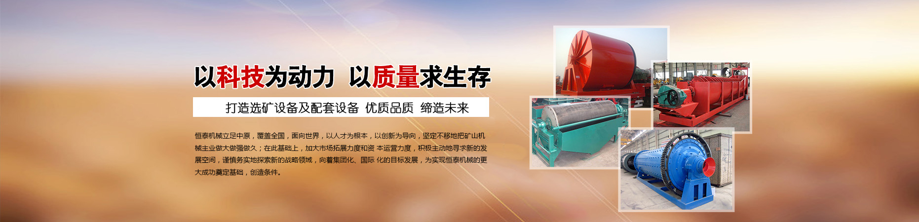 鞏義市恒泰機械廠順應全球環境保護的趨勢,緊密跟隨世界科技發展步伐,先后研制多種節能環保型機械設備,形成規;可a。尤以烘干機設備、破碎機設備、撕碎機設備、給料篩分設備、球磨機選礦設備的生產設計,具有豐厚的技術經驗,產品機械化、自動化程度高,質量穩定、安全。